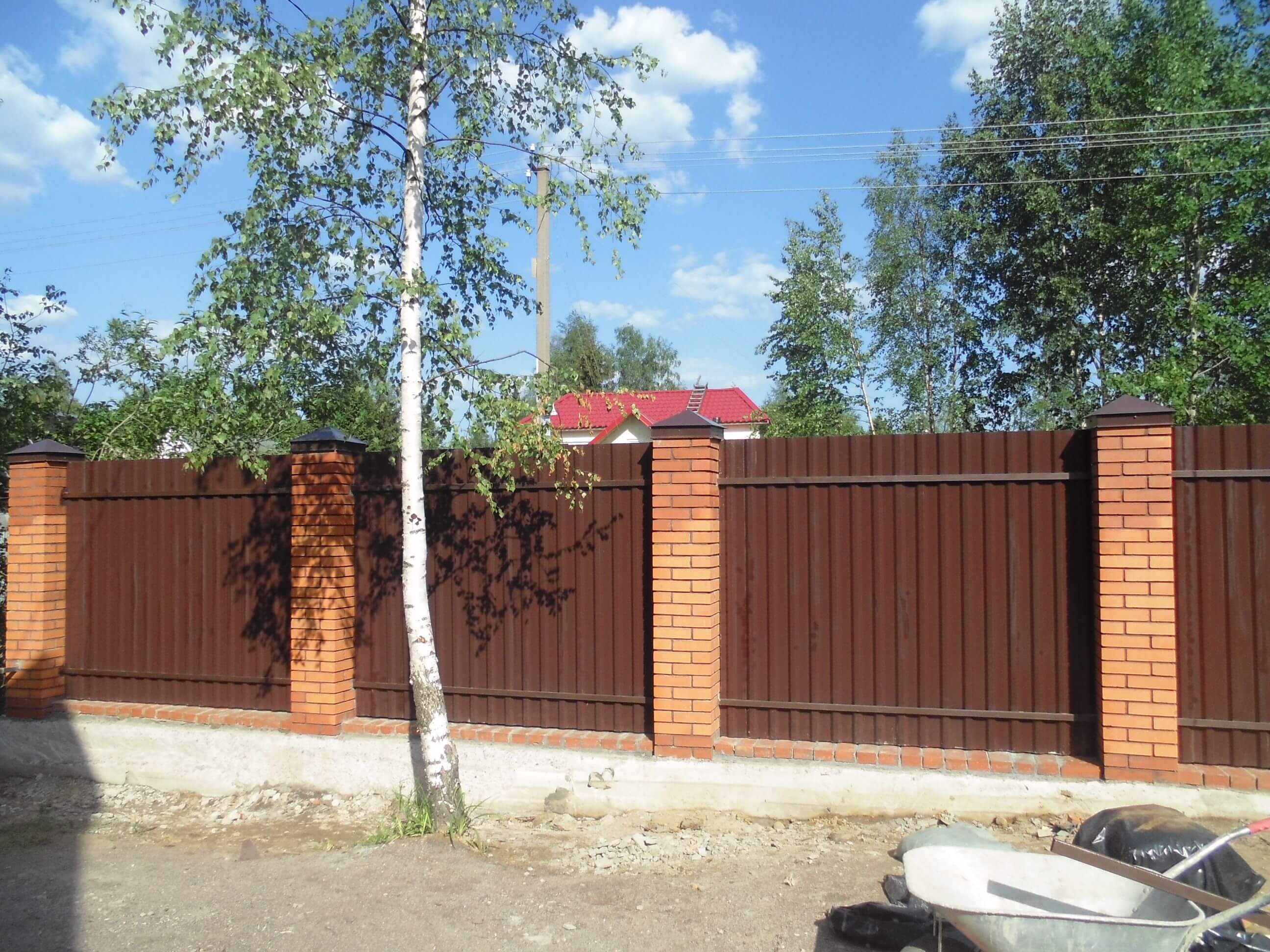 Стандартный фасадный материал для частного и промышленно-гражданского строительства. Позволяет создавать сравнительно долговечные и устойчивые конструкции. Применяется как временное и постоянное решение, при этом остается достаточно бюджетным. С-10 делают с прямыми или фигурными верхами для забора.